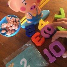 The child is 3 years old. I really like the game, given that he knows the numbers of course. We will learn to spit and take away